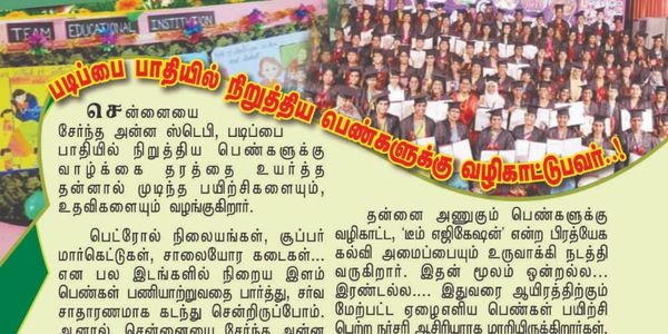 TEAM EDUCATIONAL INSTITUTION Mrs.Anna Steffi have featured in the Women Magazine - Thozhi for her Service for this Field of Education and Supporting Women Empowerment in our Society.
